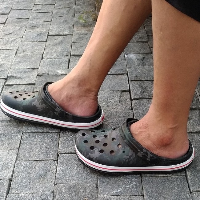 但我頭往下看時,看到洞洞鞋我會突然wow