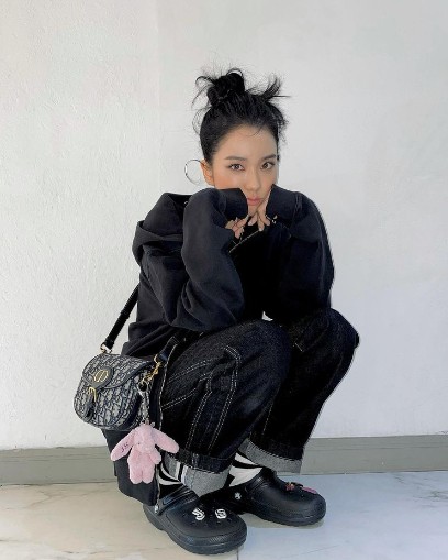BLACKPINK Jisoo 的時尚風格備受大家喜愛,穿上襪子並配襯黑色 Crocs以及扣上韓國大熱的可愛扣飾多少讓人入坑